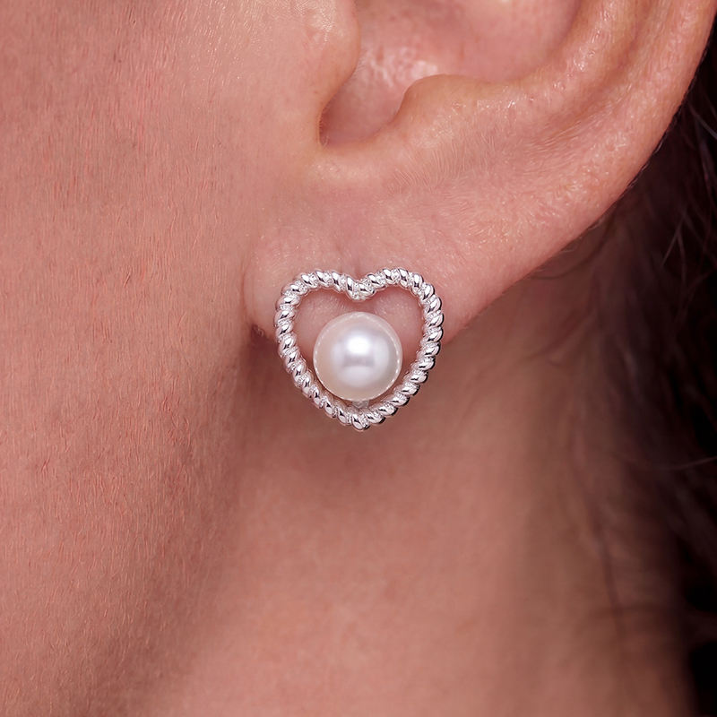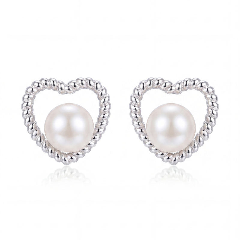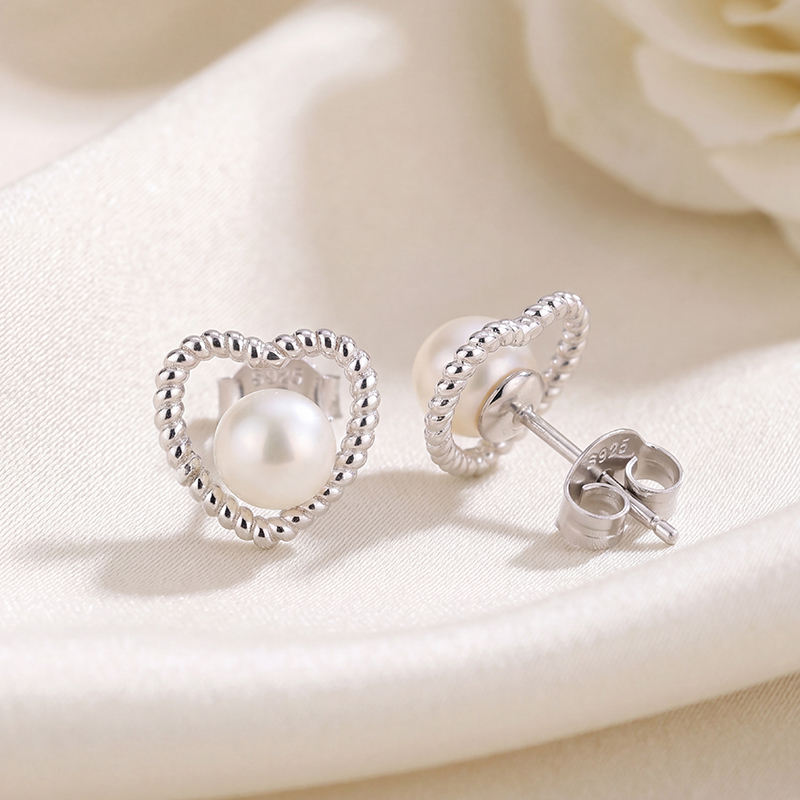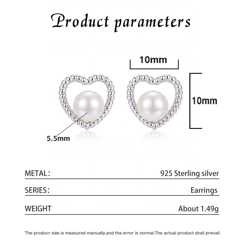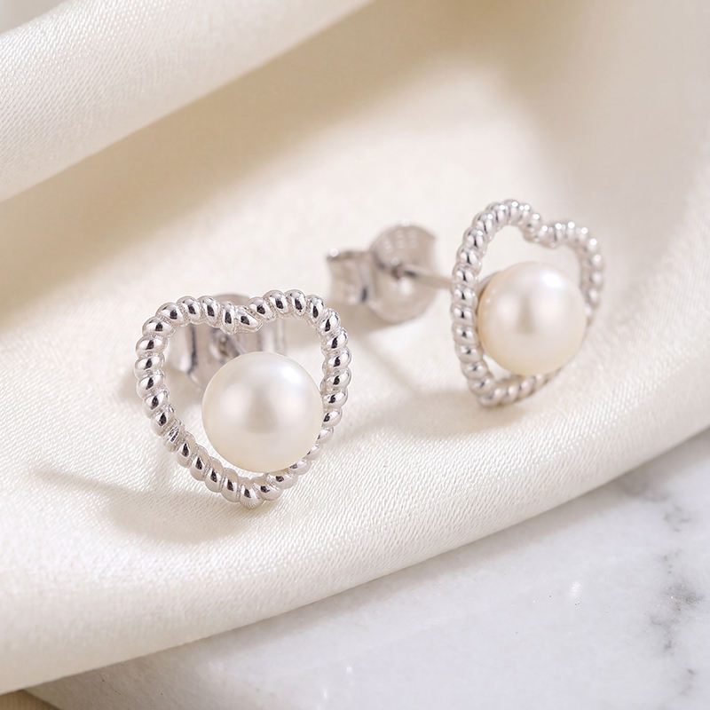 Copper Heart Rope Frame Freshwater Pearl Stud Earrings Minimalist Silver Plated Jewelry for Women