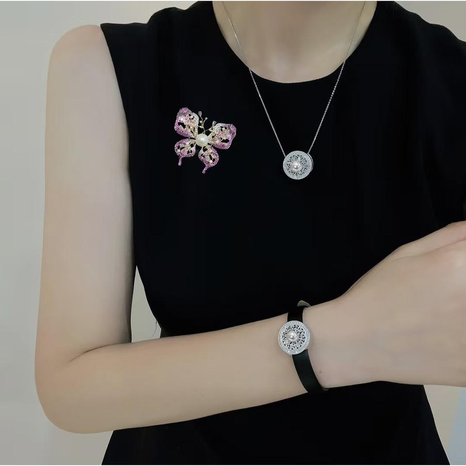 Copper-Inlaid Zircon Butterfly Brooch Dynamic Seawater Pearl Collar Decoration Creative Design Clothing Clip Chest Fashion