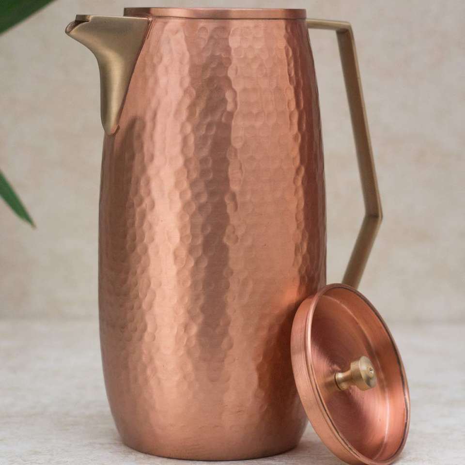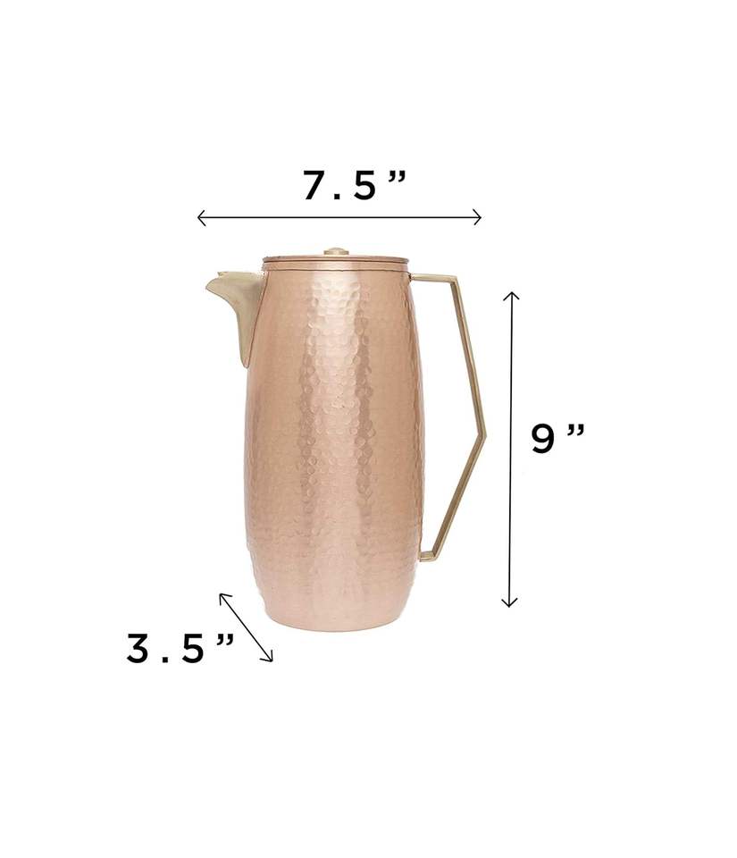 Copper Jug for Drinking Water Handmade Antique Water Pitcher with Lid Ayurvedic Drinkware for Health Yoga Wellness