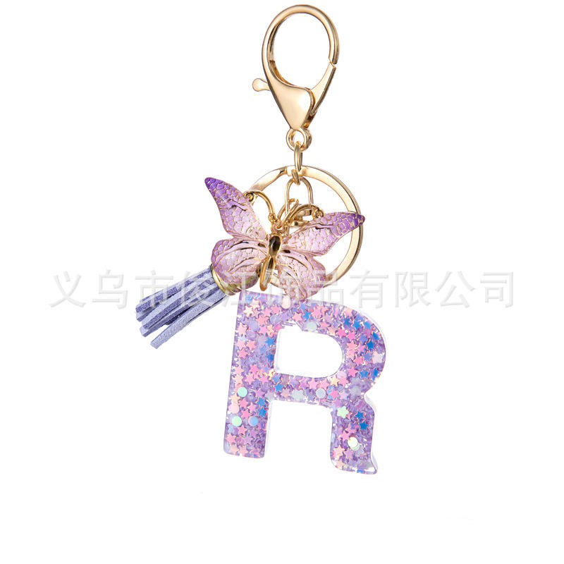 Copper LED Keychains with 26 English Letters purple Star Tassels Doll Pattern Safe Feature for Ladies' Students' Bags Pendants