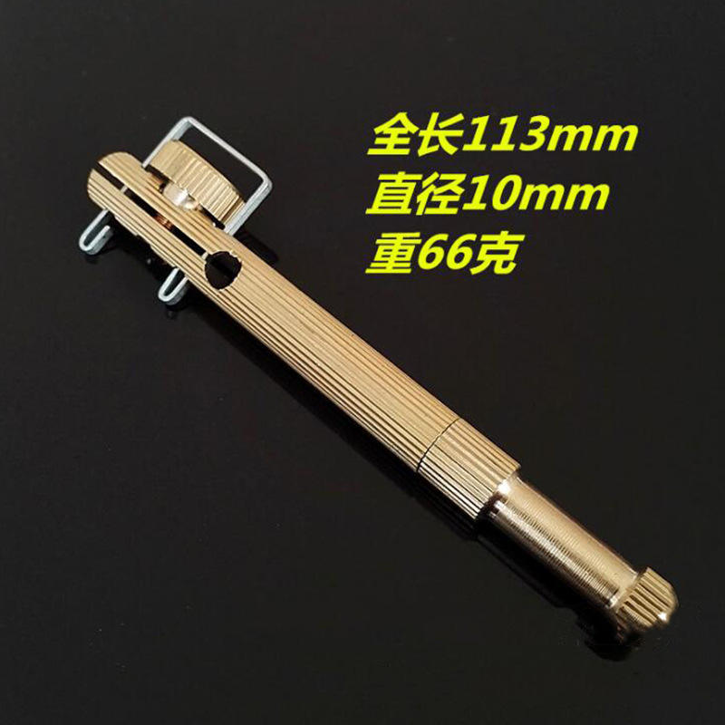 Copper Leader Knotter And Hook Tying Tool For Fly Fishing With Metallic Yellow Finish And Textured Grip Design