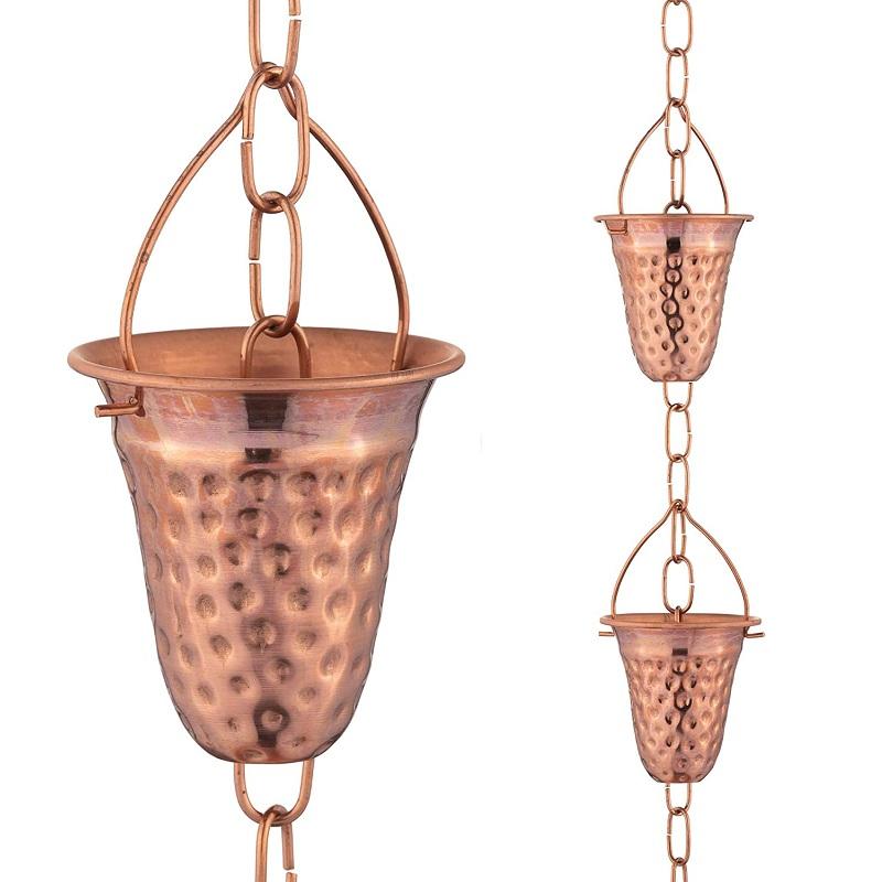 Copper Metal Hammered Bell Design Rain Chain Garden Suppliers for Home Outdoor Indoor Decoration