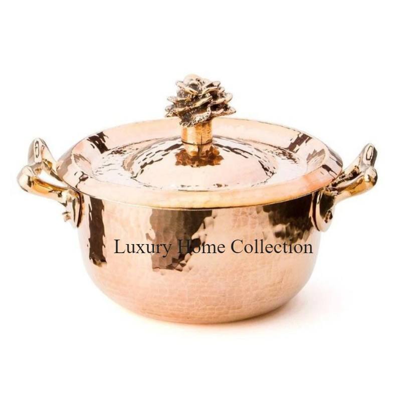 Copper Plated Food Warmer Metal Heavy Duty Copper Ruffoni Casted Lid and Handle Shiny Polished Hot Pot Food Serving Dish and Pot
