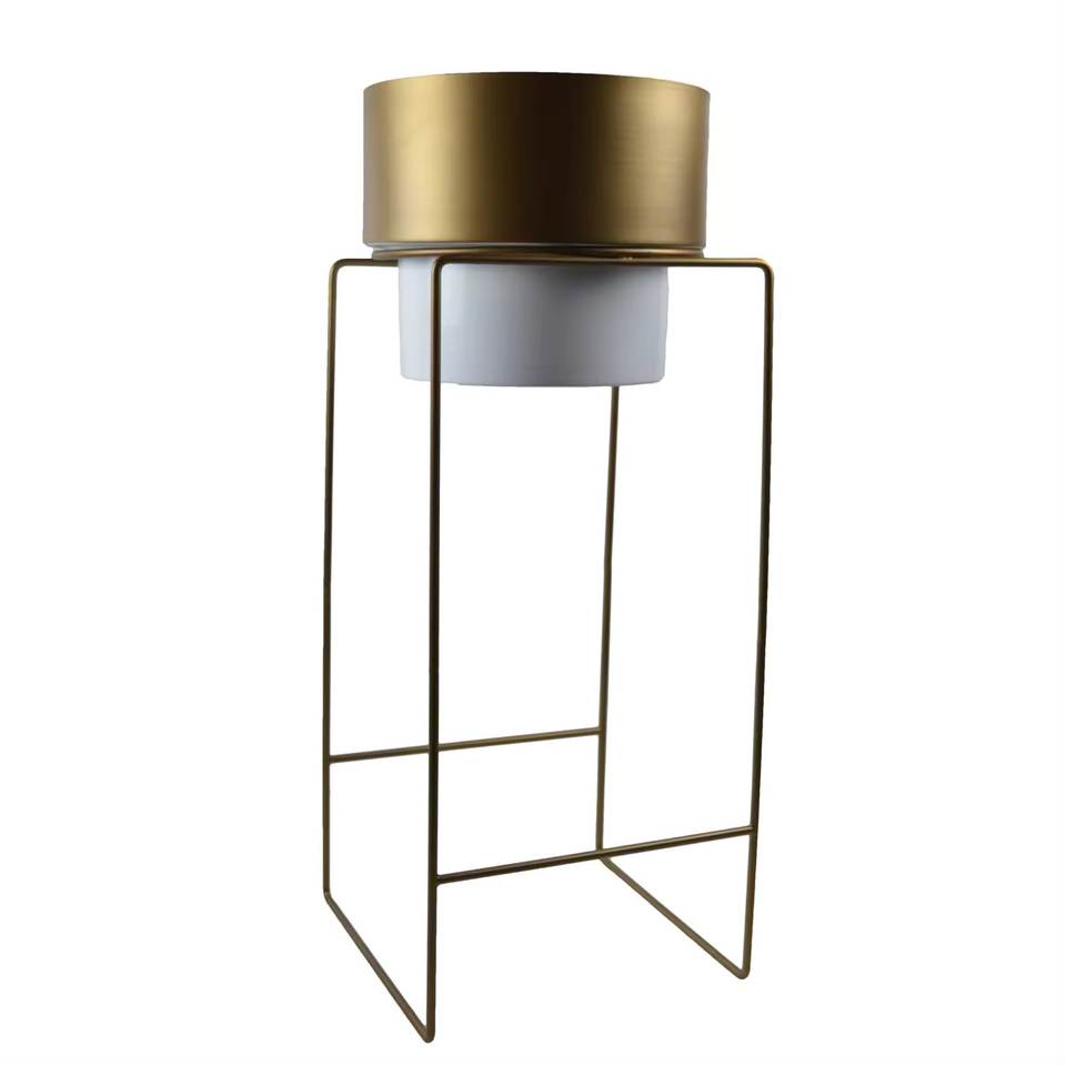 Copper Plated Metal Round Flower Planter for Indoor and Outdoor Decorative Plants Pot With Black Iron Stand Handmade