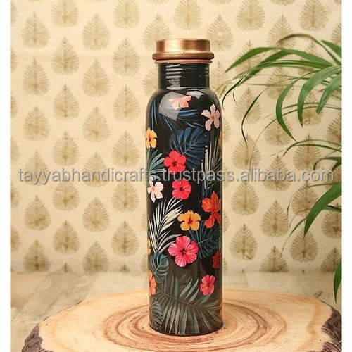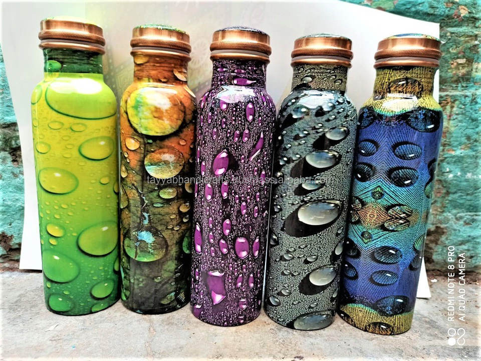 Copper Printed Water Bottle Eco-Friendly Stylish Design With Two Glass Printed Copper Water Bottle