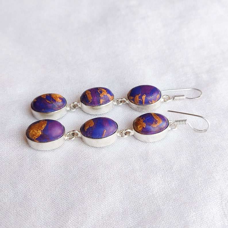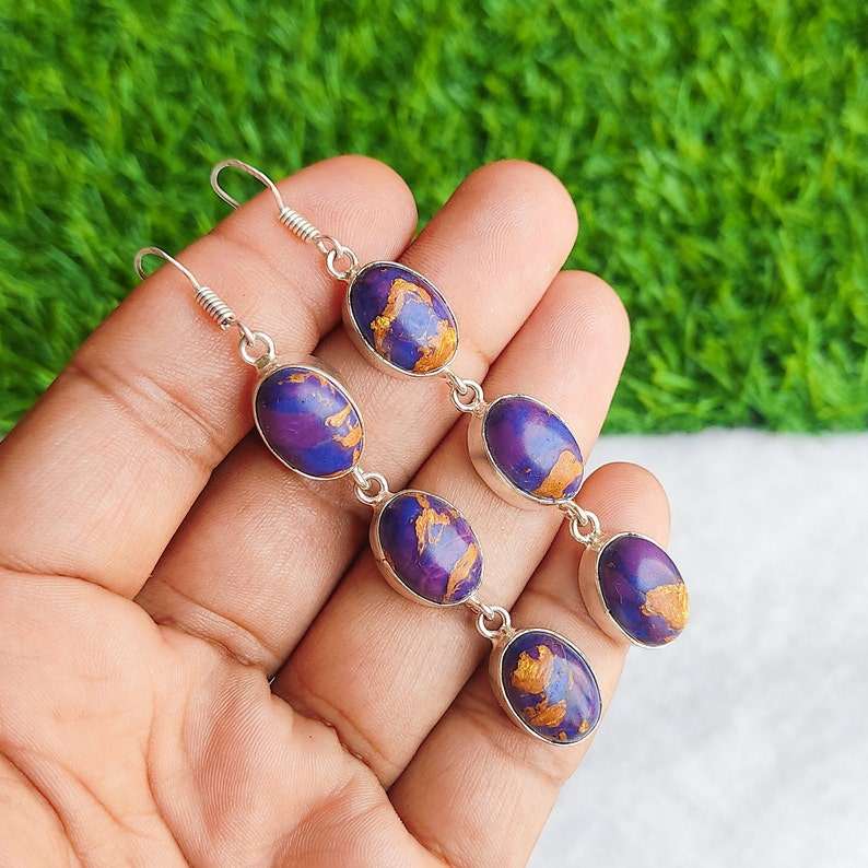 Copper Purple Turquoise Multi Stone Earrings 925 Silver Plated Dangle Gemstone Earrings Handmade Boho Jewelry Gift for Her