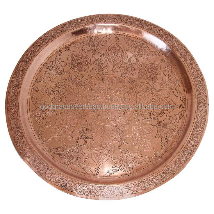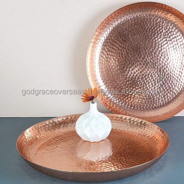 Copper Serving Tray With Tabletop Decorative Durable Quality Home Kitchen Food Copper Polished Round Shape