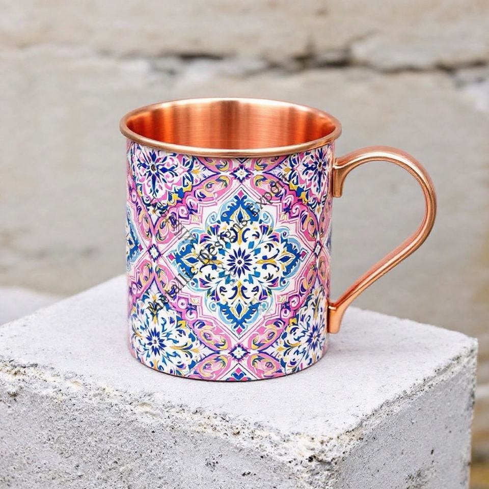 Copper Straight Mug with Beautiful Sticker Floral Design, Elegant Metal Moscow Mule Drinkware Perfect Gift Unique Coffee/Tea Cup