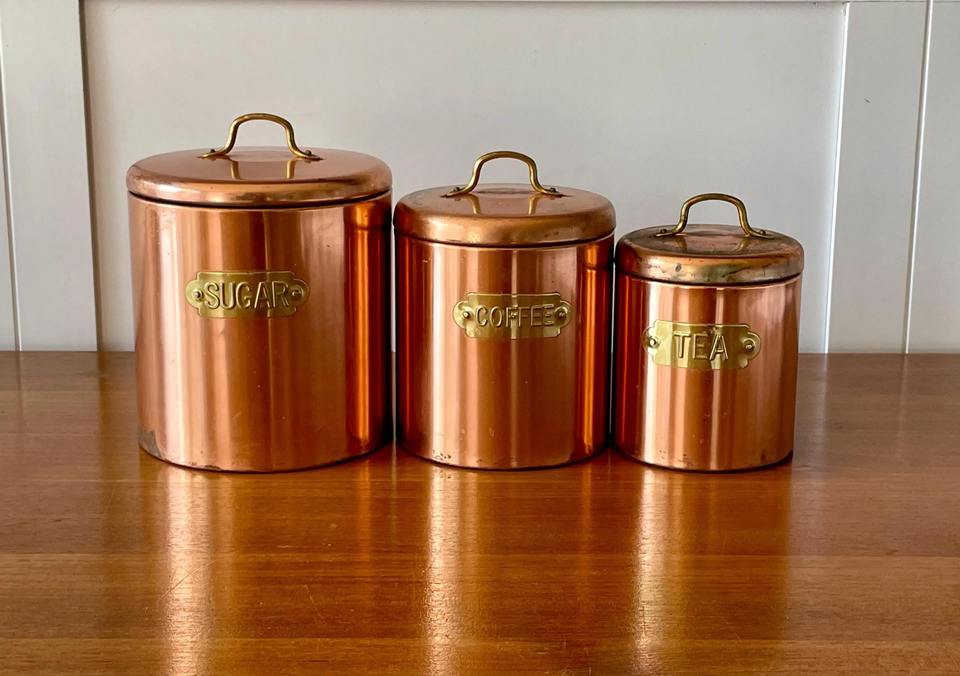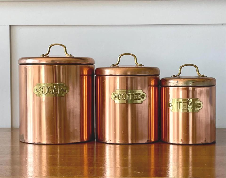 Copper Tea Coffee Sugar Container For Kitchen Storage Daily Utility Use Easy Access Everyday Cooking And Beverage Preparations