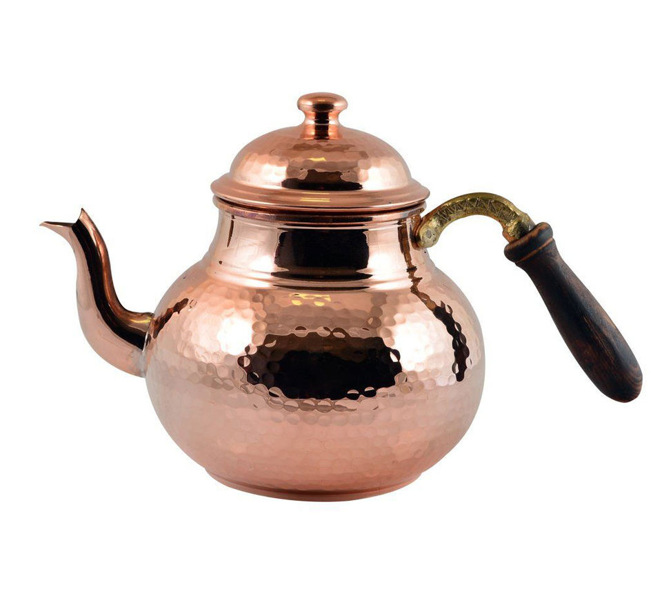 Copper Tea Pot with Hammered Design Metal Kettle for Coffee and Tea Serving Stovetop Breakfast Server
