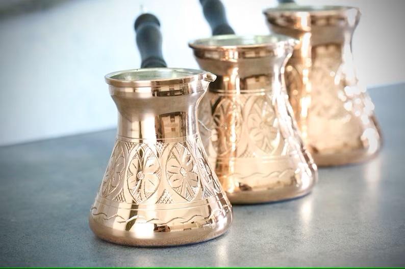 Handmade 500ml Copper Turkish Coffee Pot with Wood Handle Classic Arabic Brass for Restaurant Servings Metal Material