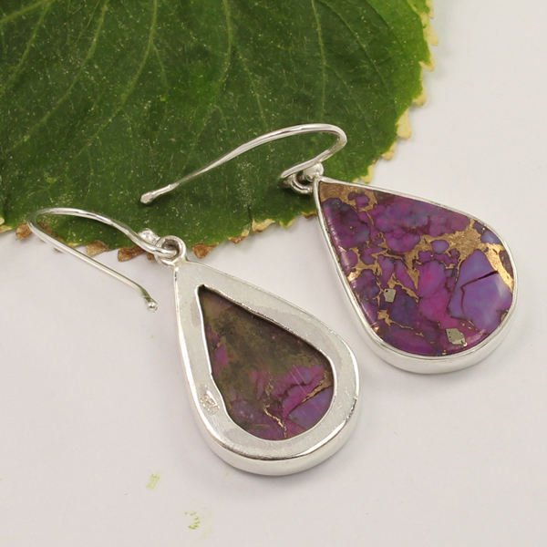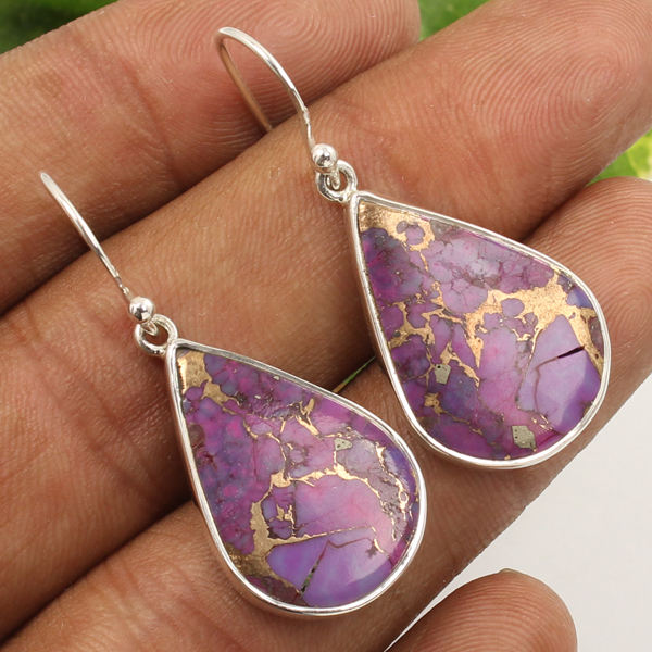 Copper Turquoise Pear Shaped Trendy Earrings Purple Gemstone Dangle 925 Solid Sterling Silver Earrings Wedding Gift