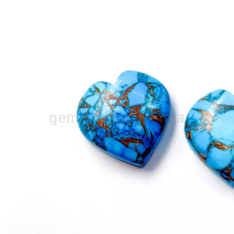 Product name:Copper Turquoise Faceted Heart Carved Cabochon