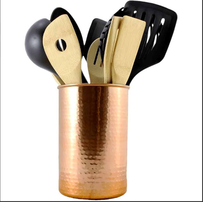 Copper Utensil Holder Premium Stainless Steel with Elegant CopperPlated , Sturdy Base Ideal for Copper Kitchen Accessories