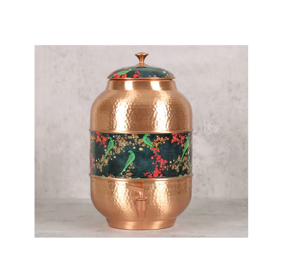 Copper Water Dispenser Pot Copper Water Dispenser Manufacturers Pure Copper Drink Water Pot with Printed Design Piece