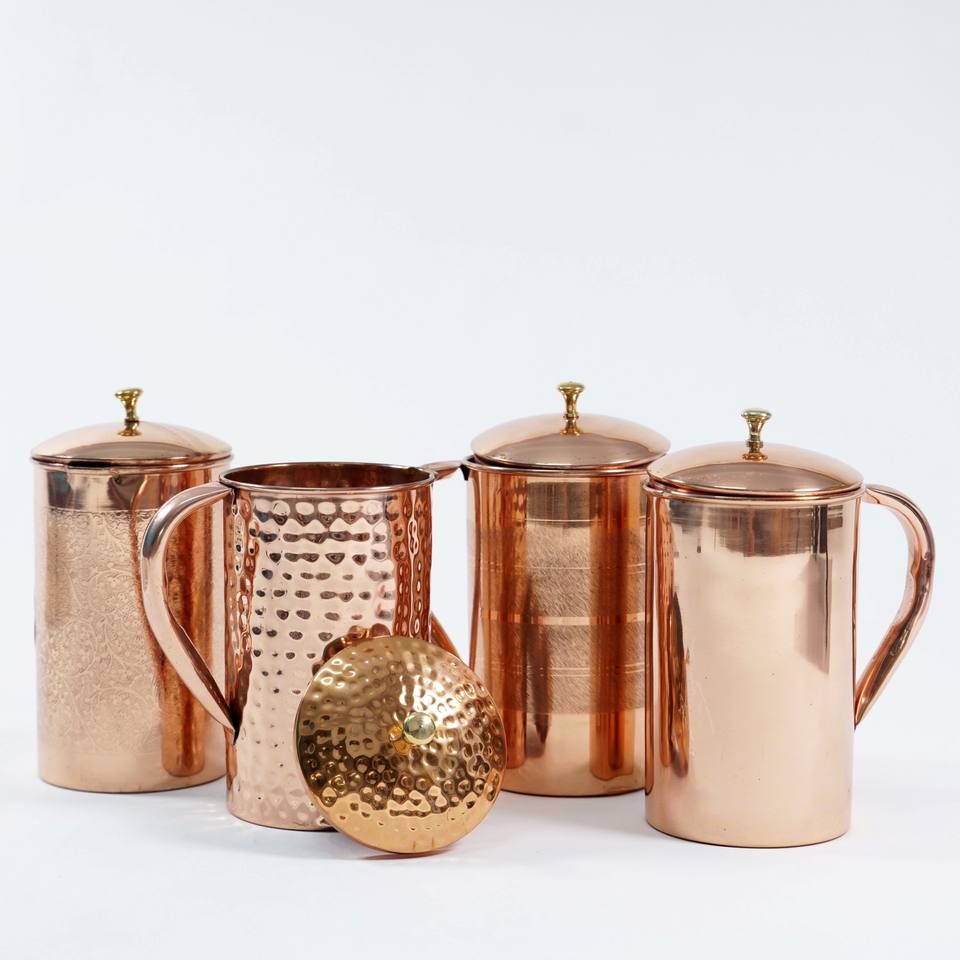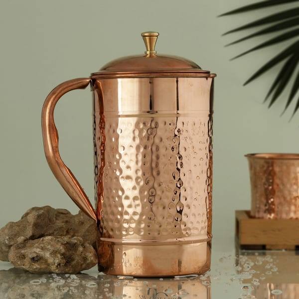 Luxurious Hammered Copper Plated Eco-Friendly 1.5 Liters Metal Water Pitcher Pouring Jug for Daily Drinking