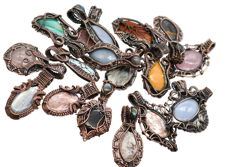 Copper Wire Wrap Pendant Mix Gemstone Bezel Setting Handmade Women's Party Festival 2 Pcs to 100 Pcs Lot Necklace