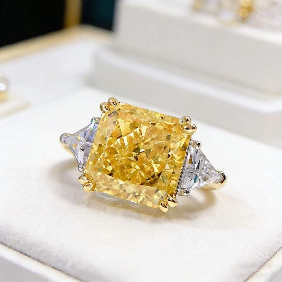 Copper high carbon diamond 5 carat 8A ice cut square cushion ring for women