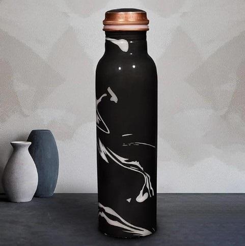 Copper water bottle for Ayurveda health benefits, leak-proof, eco-safe, 100% copper material with printed interior eye-catching