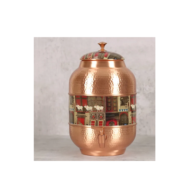 Copper water dispenser Copper Water Tank Designer Metal Stande With lid Customize Logo From india handicraft