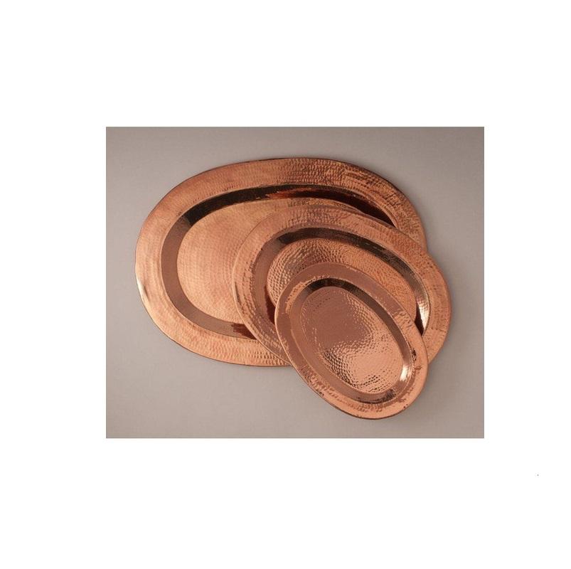 Copperware Trays Pure Round shape Rectangular Food Snacks Drinks Serving Tray Handmade Hammered Polished At Nice Price