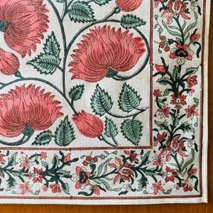 100% Pure Cotton Indian Hand Block Printed Table Runner Coral Turquoise Green Floral Design for Farmhouse Wedding Home Decor