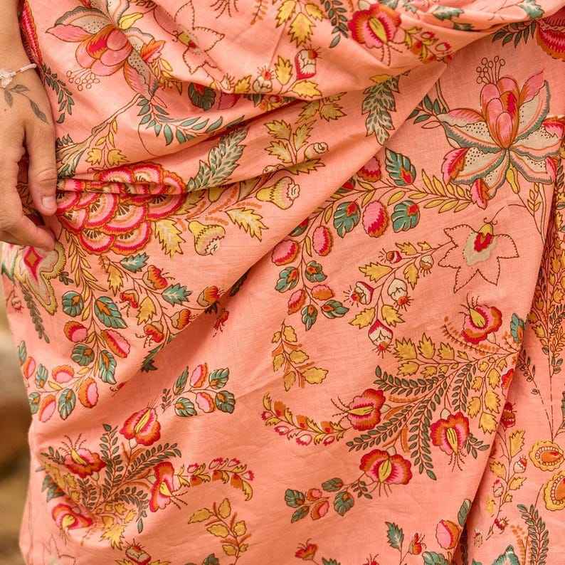 Coral Bloom Cotton Beach Sarong Hand Block Printed Summer Wrap