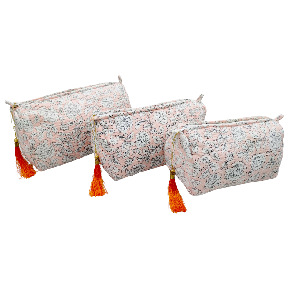 Coral Floral Quilted Cosmetic Organizer Set - Warm & Inviting