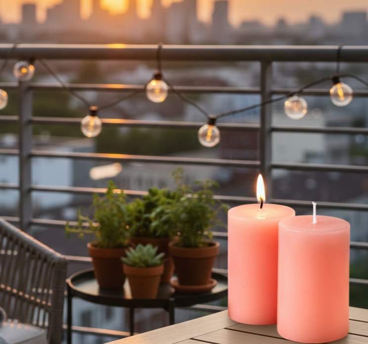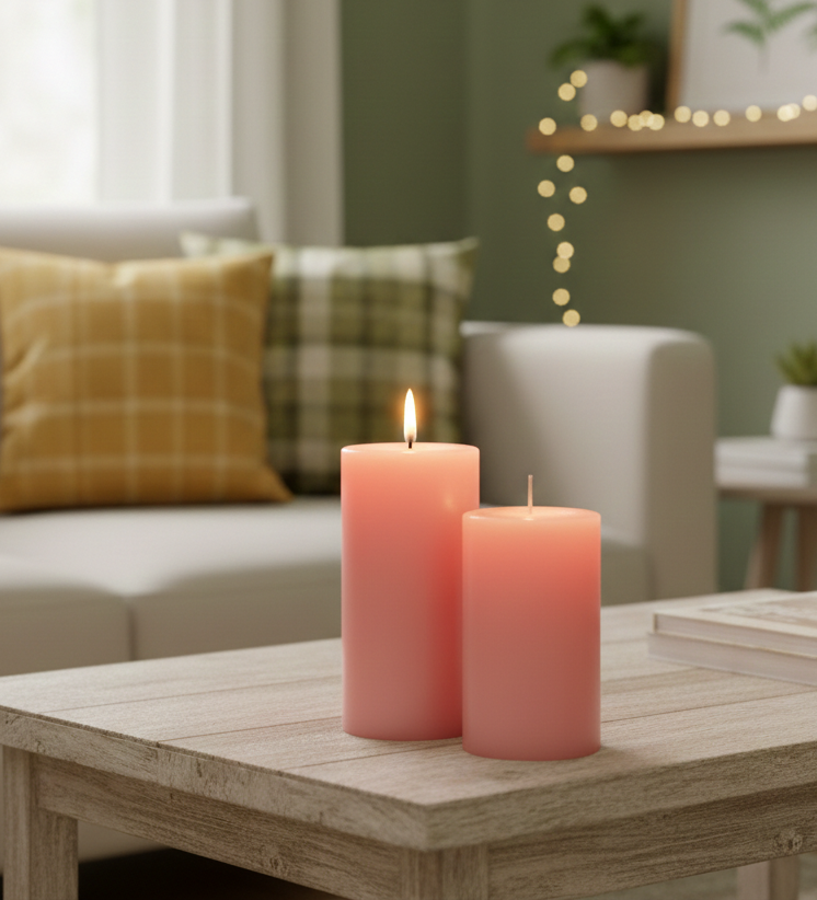 Coral/Peach Soy Wax Outdoor & Indoor Pillar Candles Set of 2-Handcrafted Long-Burning & Eco-Friendly Christmas & Halloween