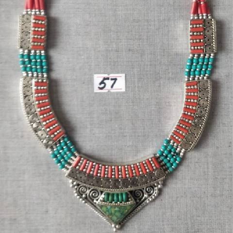 Coral Tibetan Traditional Necklace:made of Copper alloy German silver