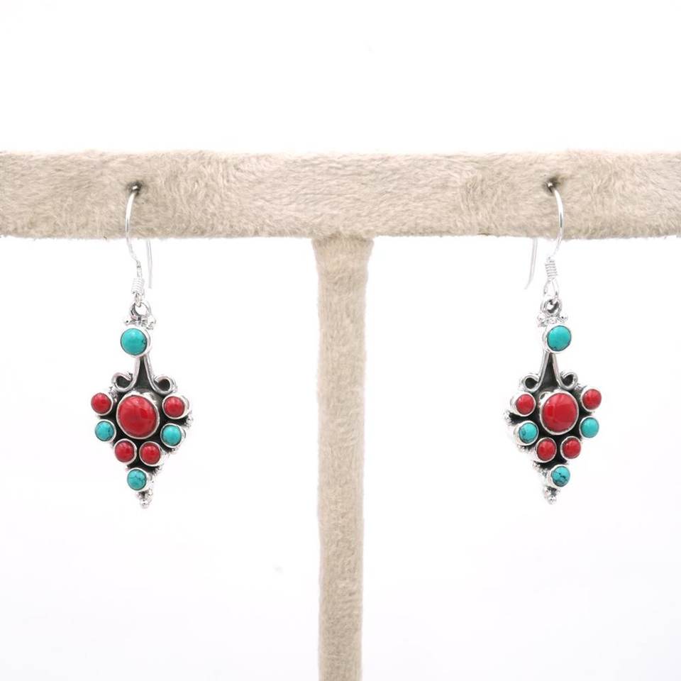 Coral & Turquoise 925 Sterling Silver Earrings Boho Style Natural Gemstone Fashion Accessory Wedding or Gift for Her
