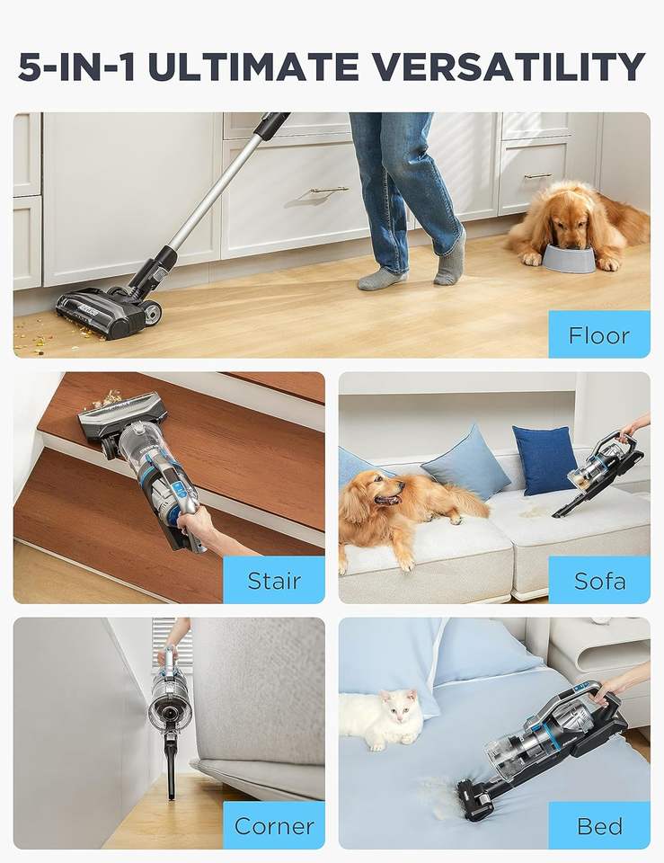 Cordless Vacuum Cleaner, Stick Vacuum for Home Pet Hair Carpet Hardfloor, Powerful Suction, Dual LED Headlights, Black