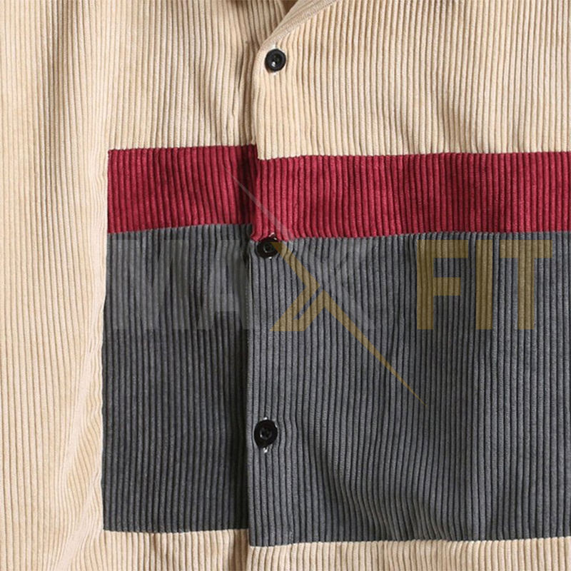 Corduroy Jacket Shirts for Men Loose Casual Color Block Patchwork Fashion Men Blouse Tops Long Sleeve Turndown Collar Lapel