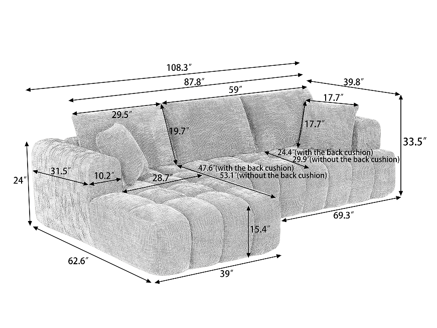 Corduroy Modular L-Shape Foldable Convertible Sofa Compressed Sponge Vacuum Packaging Boneless Design for Living Room Hotel Use