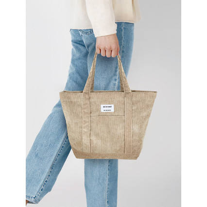 Corduroy PU Leather Tote Bag Zippered Closure Customizable Logo Portable Season-Accurate for Spring Summer Autumn Winter Use