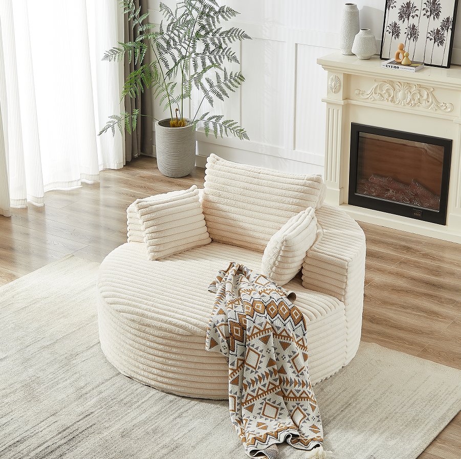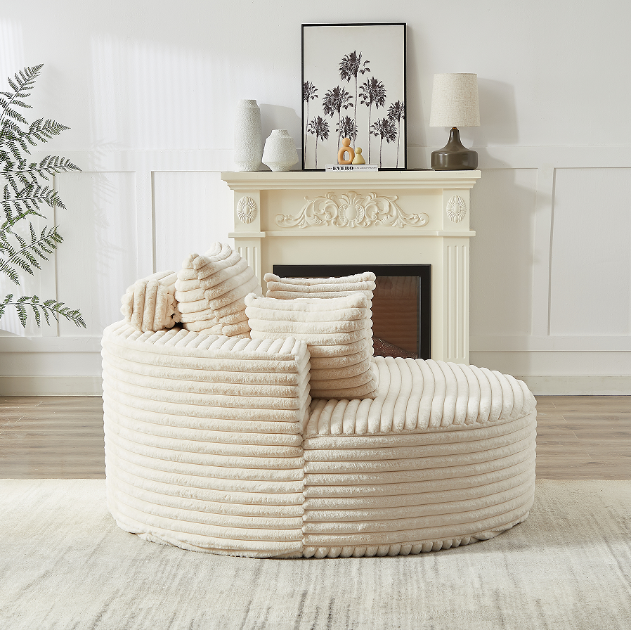 Corduroy Sponge Convertible Compression Sofa Set No Assembly Required Fluffy Modern Sleeper Chair for Living Room Bedroom