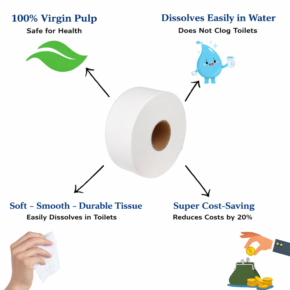 Coreless Jumbo Toilet Paper Roll Space Saving Design Soft Absorbent Tissue for High Traffic Public Facilities