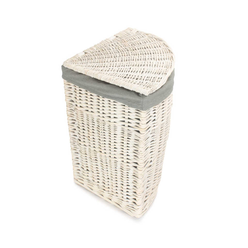 Corner White Wash Wicker Laundry Hamper with Grey Sage Lining
