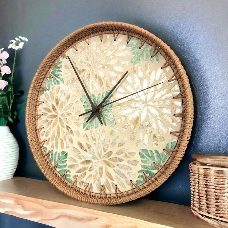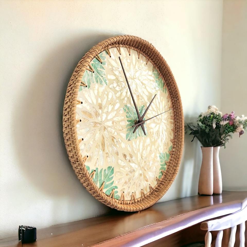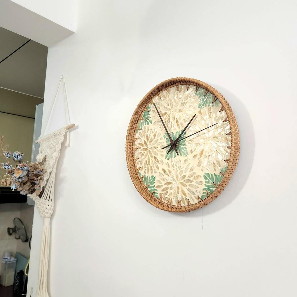 Corner rattan wall clock wholesale price natural wooden clocks for bedroom and living room decor