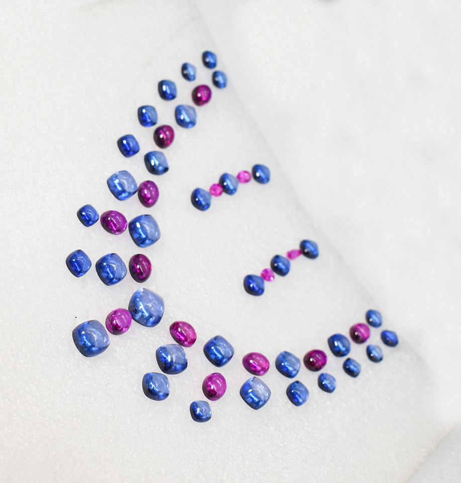 Cornflower Blue Sapphire Sugarloaf & Lab Pink sapphire Oval Cabochon Gemstone Necklace Layout Set Corundum Gemstone For Jewelry
