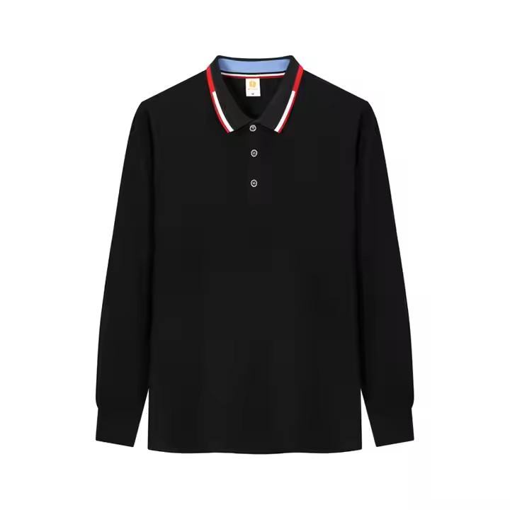 Corporate Logo Long Sleeve Polo Shirts - Breathable Polyester Cotton Men's Work Uniforms