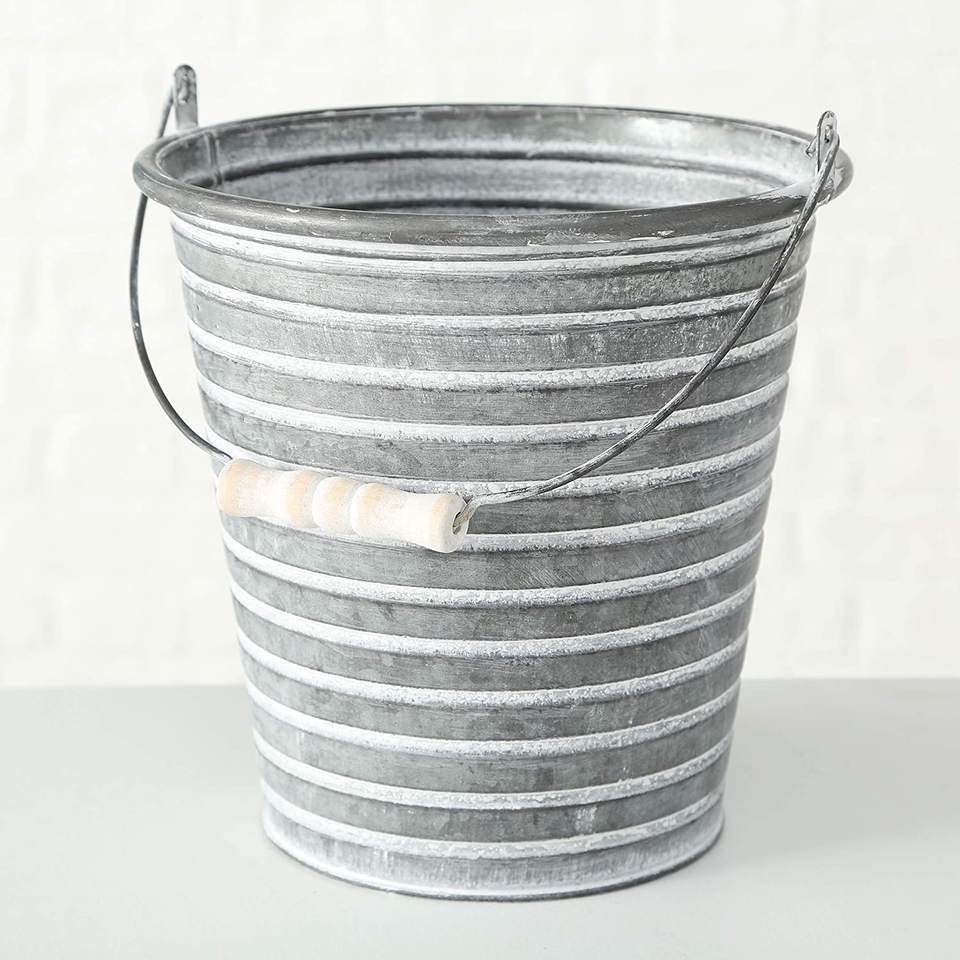 Corrugated Galvanized Metal Pail Planters Round Bucket Cache Pot Jardinieres Distressed Dark Grey Color
