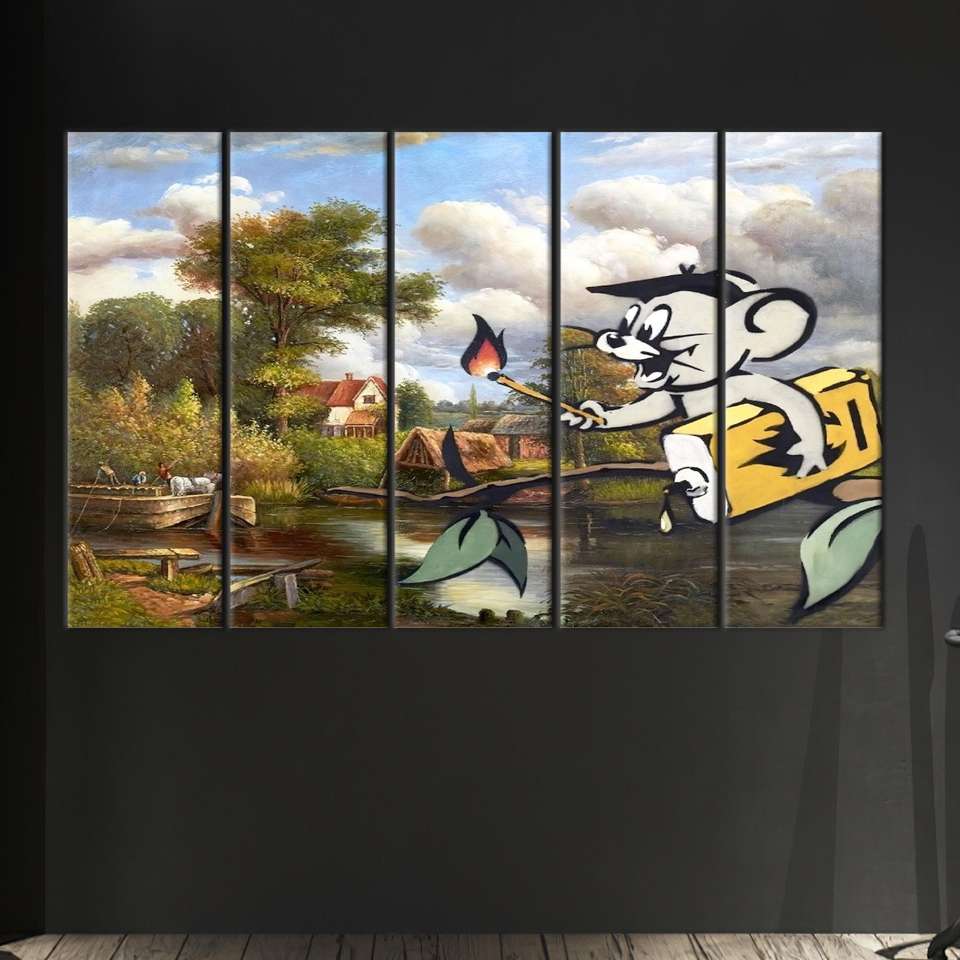 Corrupted Oil Jerry Art Print Canvas - Banksy Inspired Graffiti Artwork,5P:Gallery Wrapped
