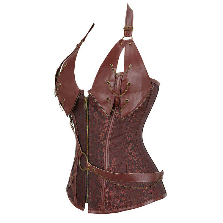 Steampunk Halter Neck Corset Jersey Bustier Top for Women with Zipper Medium Control Daily Sports Use