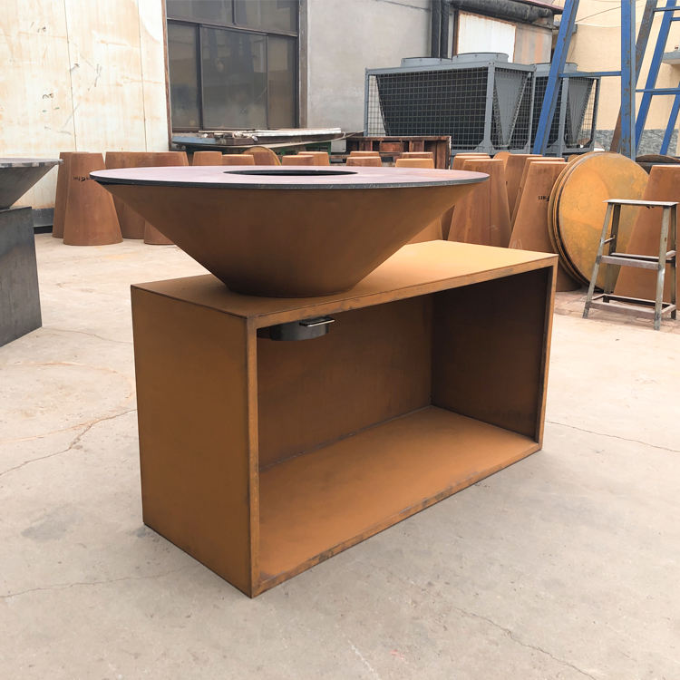 Corten Steel Large Freestanding Garden Camping Grill Wood-Burning Fire Pit with Charcoal and Firewood Fuel Options