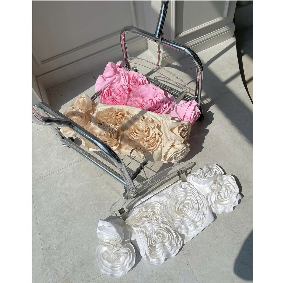 Coshe Alice Modern Summer Woven Collarless Top with Floral Embellished Off-Shoulder Breathable Skinny Fit Romantic Made Vietnam