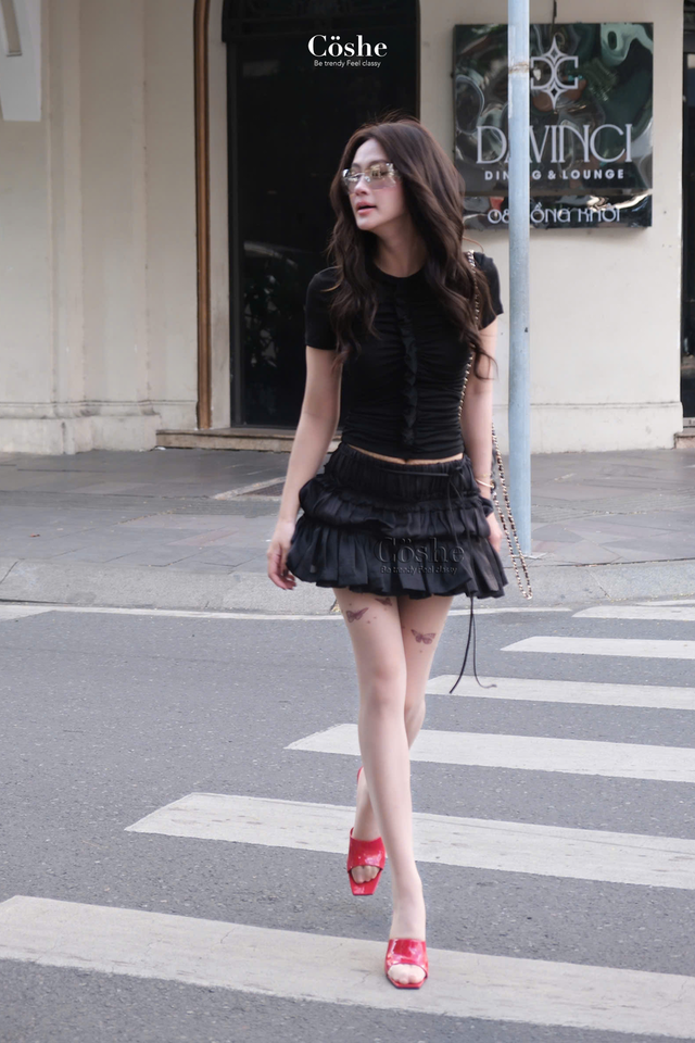 Coshe Astro Elegant Casual Outfit for Women Sweet Style Short Sleeve Top Ruffle Detail Lace Layered Mini Skirt for Daily Wear