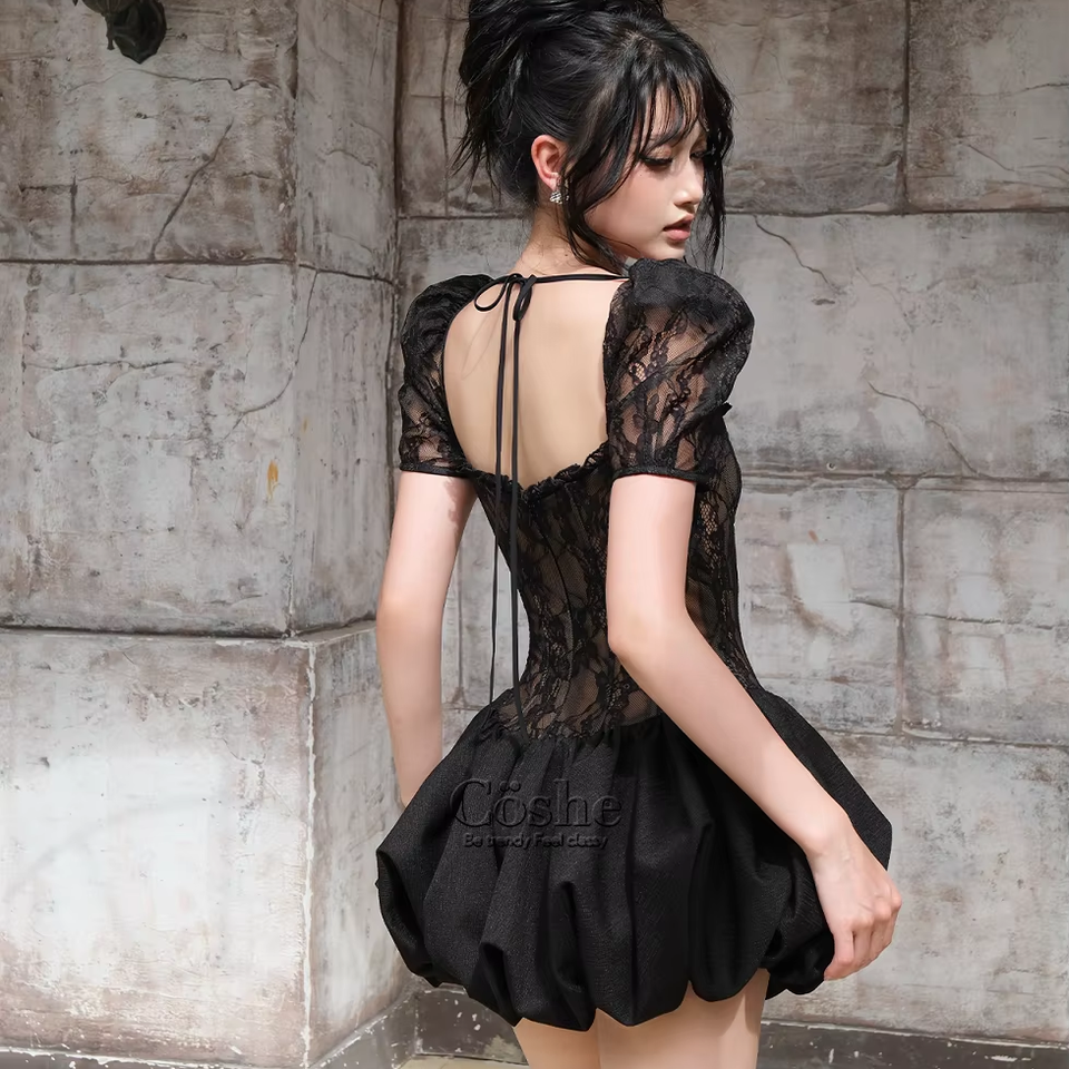 Fashion Element:Backless, Floral Print, cut-out, Halter&Lace up