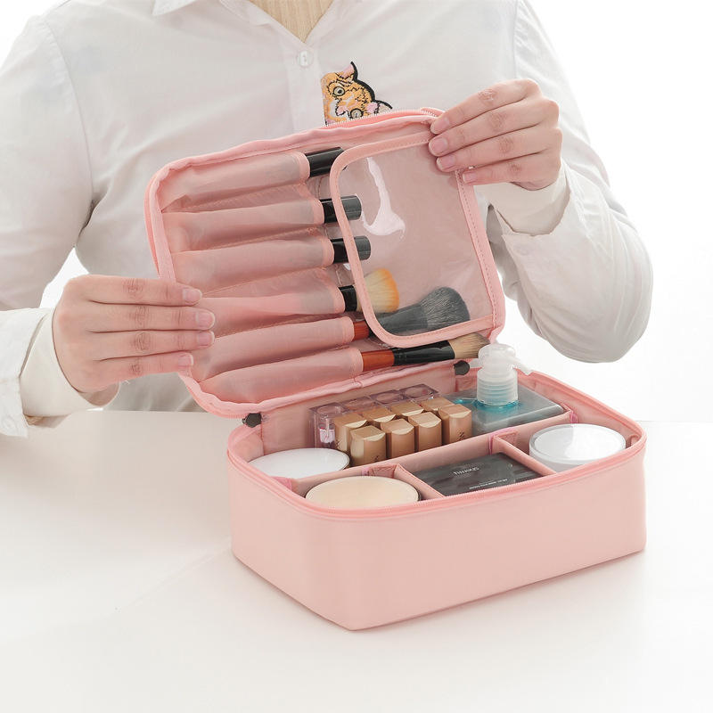 Cosmetic Bag Large Capacity Multi Functional Square Travel Storage Portable Toiletry Makeup Organizer Navy Blue