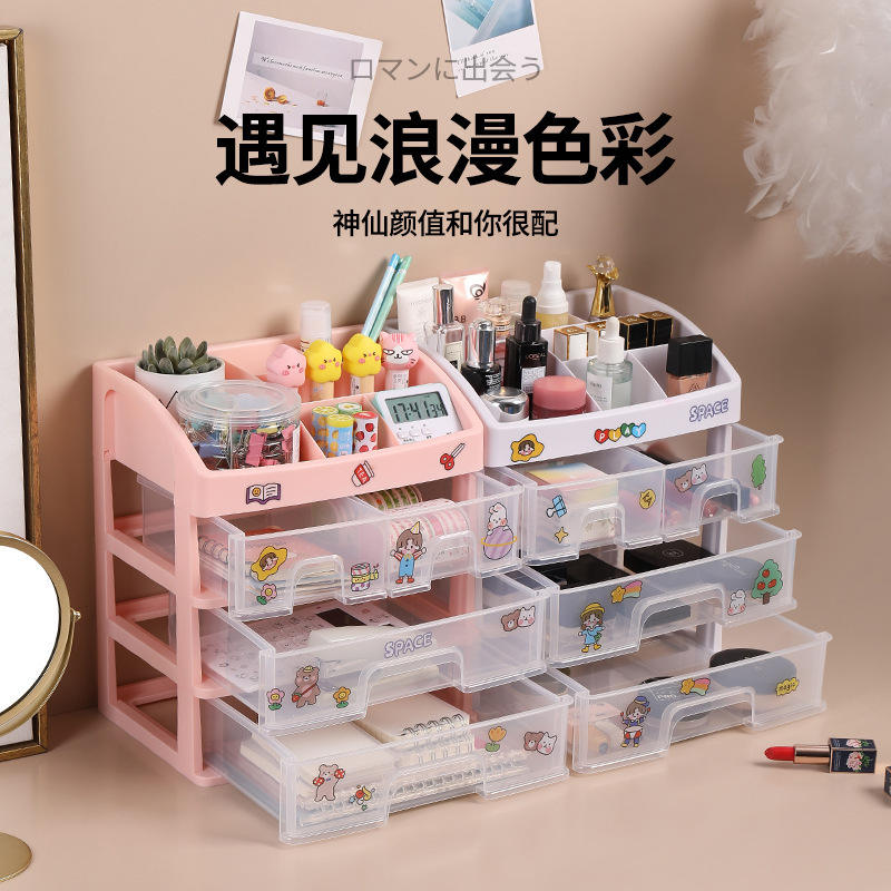 Cosmetic Desktop Storage Box Multi Layer Drawer Type With Partitions Transparent Organizing Shelf For Makeup